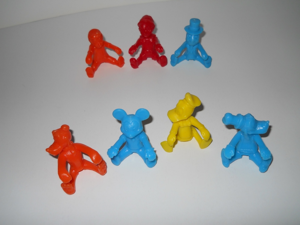 Following this, a second series of four additional figures, based on the Disney "Pinocchio" animated movie, were released in cereal boxes. Shown in the back row (l to r) are: Geppetto, Pinocchio and Jiminy Cricket (Figaro, the cat, is missing from the photo).